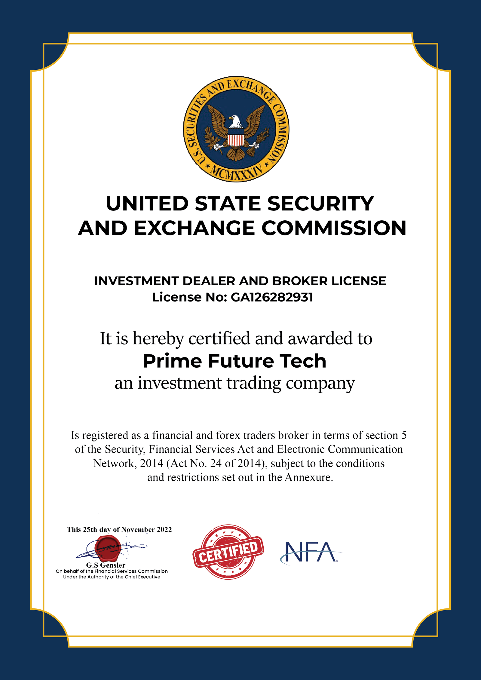 In 20015, Prime Future Tech was founded by Leonard Zurich, an Irish American, envisioning a future where cryptocurrencies and AI intersect to revolutionize the financial landscape. By 2018-2019, the company focuses on research and development, exploring the potential of cryptocurrencies and laying the foundation for AI-driven solutions. By 2019-2012, Prime Future Tech establishes itself as a trusted name in the cryptocurrency industry, offering innovative investment strategies and attracting a growing client base. By 2021,Prime Future Tech reaches a milestone, managing a diverse portfolio of clients and establishing itself as a leader in AI-powered cryptocurrency solutions. The company's commitment to innovation, expertise, and client success sets it apart in the industry. 2022-2023,Prime Future Tech continues to adapt to the evolving cryptocurrency landscape, embracing new technologies and expanding its range of services. They stay at the forefront of AI advancements, further optimizing their investment strategies, mining operations, and trading algorithms.